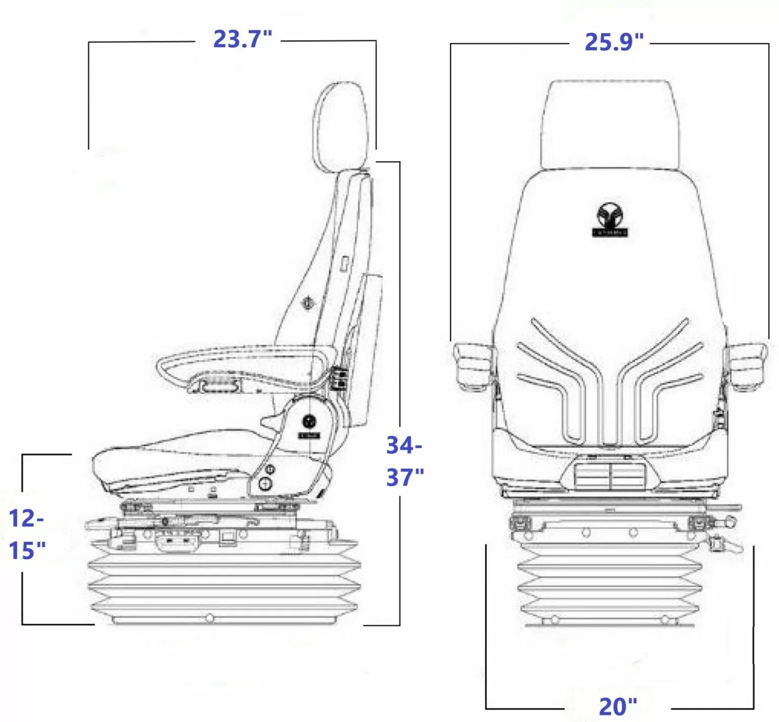 Grammer MSG95/732 Case, Caterpillar, John Deere, Volvo Loader Heavy duty, highback seat, 12v air suspension. A workhorse of the construction industry. Our most commonly sold air seat. Smooth, durable, with great vibration reduction. Highly customizable base seat with various adapters available for a huge variety of machines.Grammer MSG95/732 Rugged mechanical suspension. Heavier duty version of MSG85; larger springs, larger shock, thicker steel. Highback. Suitable for dozers, loaders, graders, & and many other construction / mining need