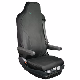 This seat cover is designed to fit the variation of Isringhausen 6860/875 with adjustable seatbelt function at the shoulder and one shoulder being lower than the other. The MERT04 is for the passenger seat in right hand drive vehicles, and will also fit the driver seat on a left hand drive vehicle. This seat is commonly found in Mercedes Unimog and Econic, Iveco Daily, MAN TGS, TGX, TGM and TGL as well as older models of Mercedes Axor, Atos and Atego. The seat cover comes in two parts, allowing full adjustment of the seat to be maintained while the cover is fitted and allows for unimpeded access to the seatbelt.