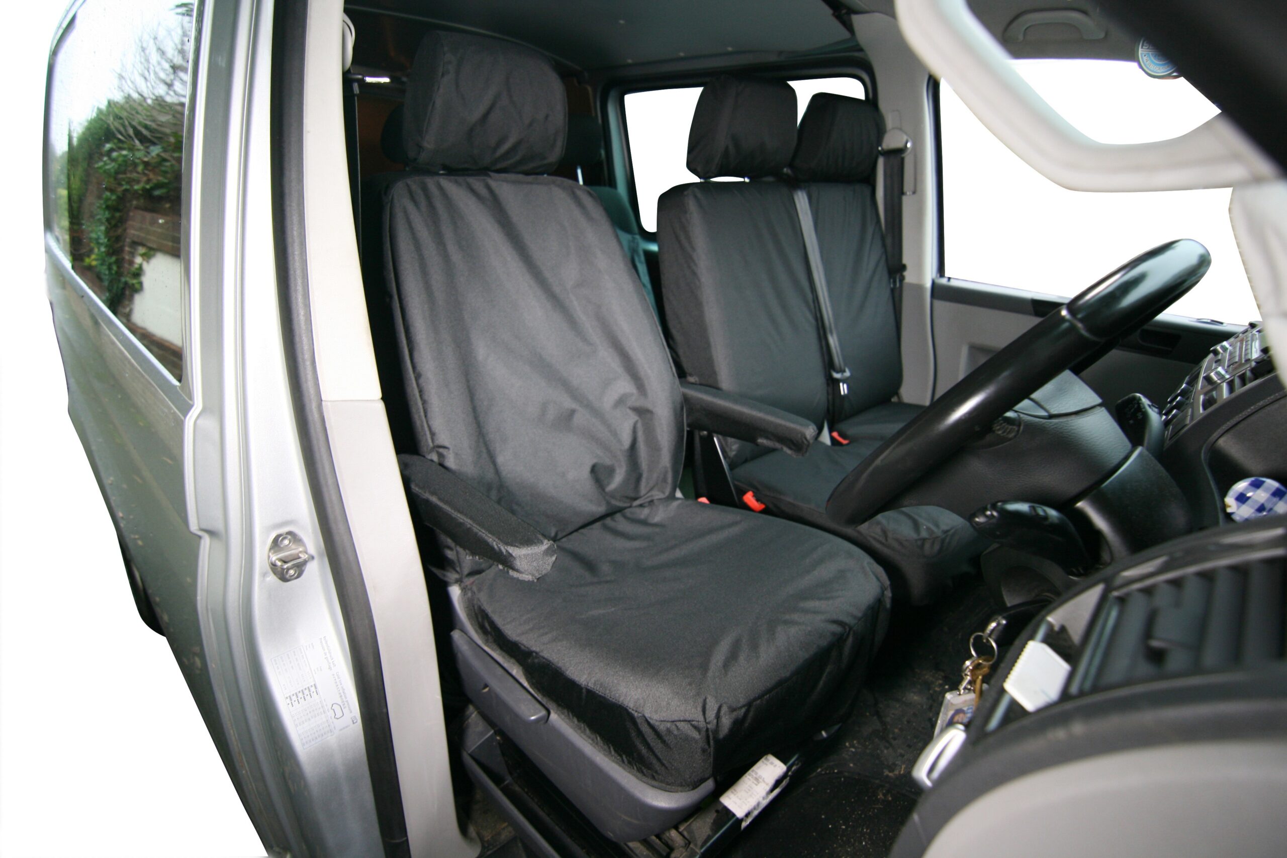 This seat cover is designed to fit driver seat and single front passenger seats in the Volkswagen Transporter T5 and T6. The T5 was released in 2003 and the T6 in 2016, this cover will fit both of these models. The TA3884 comes in four pieces, one piece for the main body of the seat, with a separate headrest and two armrest covers allowing for the seat to be fully adjusted while the cover is fitted. It is held firmly in place with Velcro and an elasticated apron around the base of the cover.